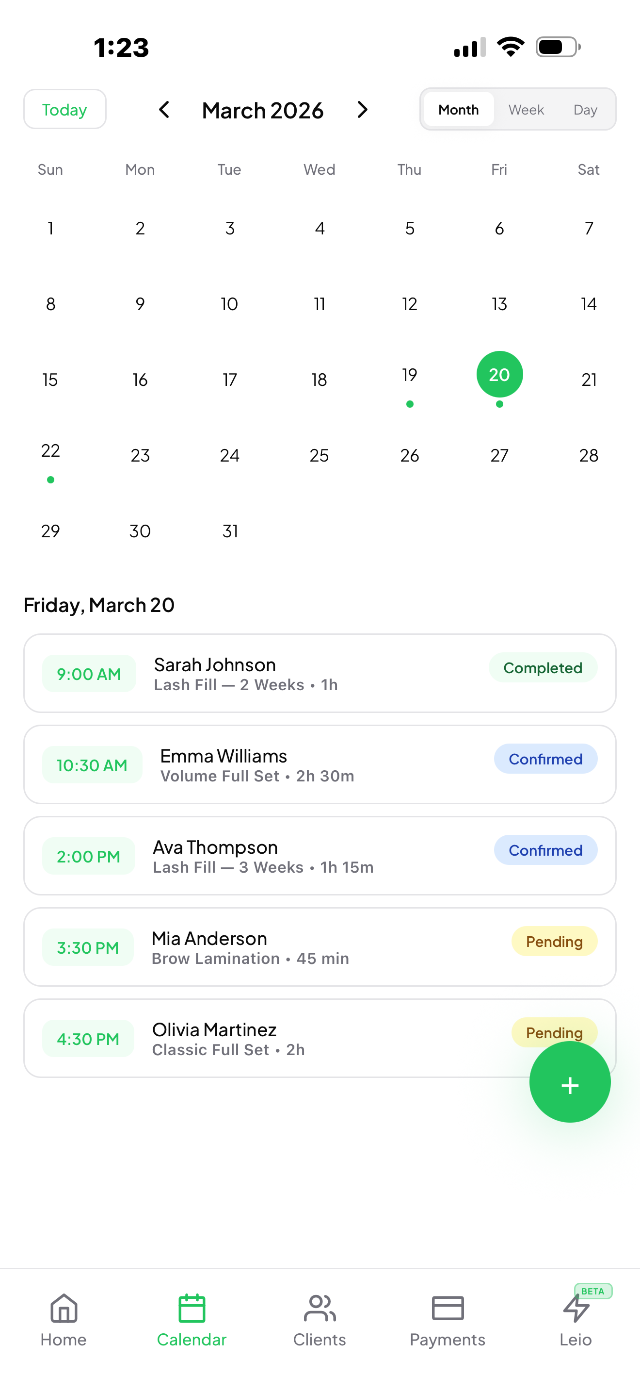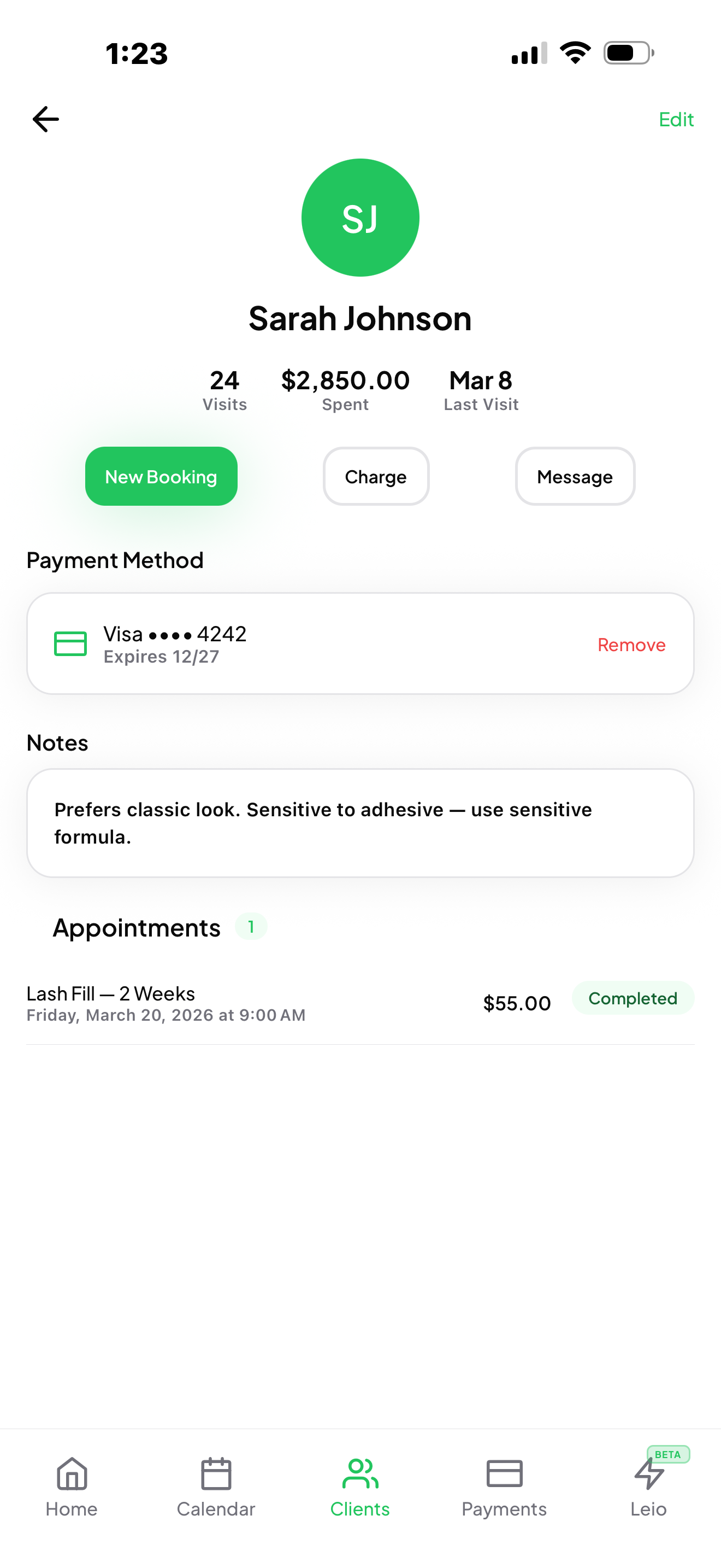 Payments, scheduling, card on file, and client management — beautifully built for service professionals.